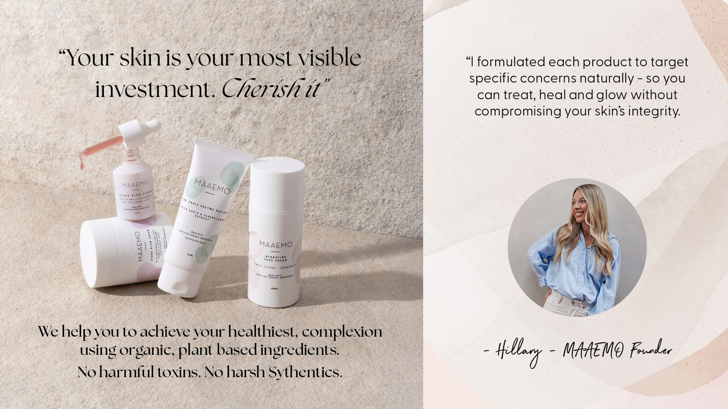 MAAEMO’s foundation in Naturopathy isn’t just part of our story – it’s the cornerstone of our brand’s essence. Being founded by a Naturopath and Herbalist ensures that our products are brought to life with the expertise, integrity, and care needed to holistically support the skin.